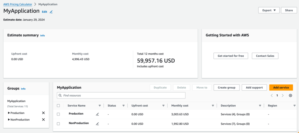 Ve většině případů je budget tvořený na rok, ale vychází z předpokládané měsíční útraty. Vzniká při návrhu aplikace, ať už s využitím AWS Pricing Calculator nebo Azure Pricing Calculator.