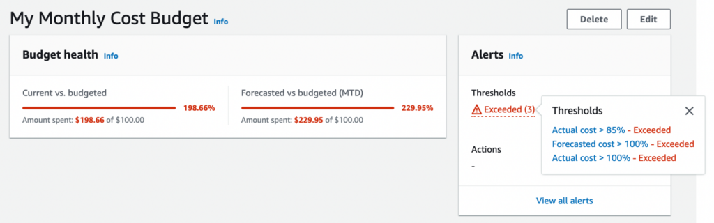 V prostředí AWS je nejjednodušší využít AWS Budgets, se kterým snadno definujete, co a jakým způsobem chcete hlídat.