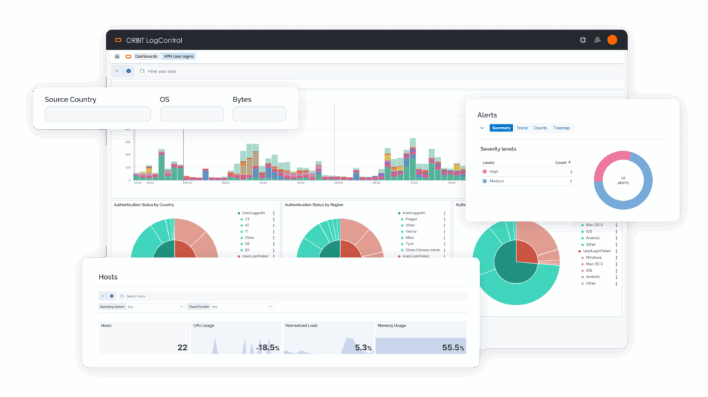Minimalizujte rizika spojená s kybernetickými útoky. ORBIT LogControl je SIEM služba, která za vás zajistí sběr a analýzu logů v reálném čase. Nepřetržitý bezpečnostní monitoring IT systémů a sítí vám dá kontrolu nad potenciálními hrozbami, což ocení zejména organizace, které spadají pod regulaci NIS2 aj.